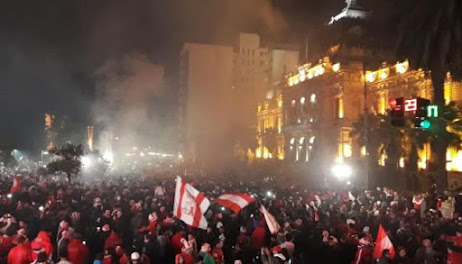 Miles de fanáticos invadieron las calles de la ciudad y colmaron la zona de Casa de Gobierno, donde prometen estar hasta tarde para una noche que quedará en la historia.